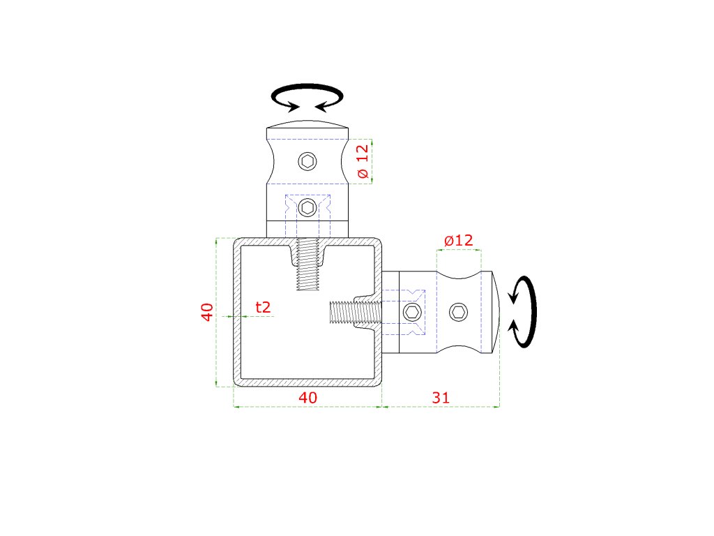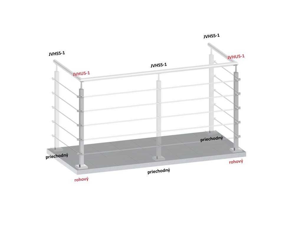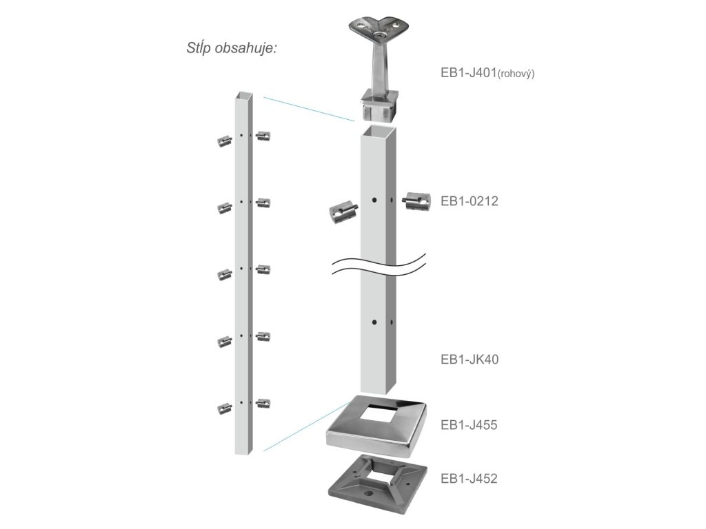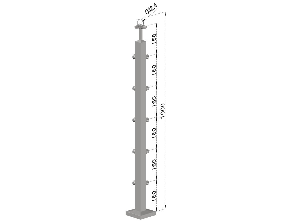 Nerezový sloup, vrchní kotvení, 5 řadový rohový, vrch pevný, (40x40 mm), broušená nerez K320 / AISI304Doplňkové parametry