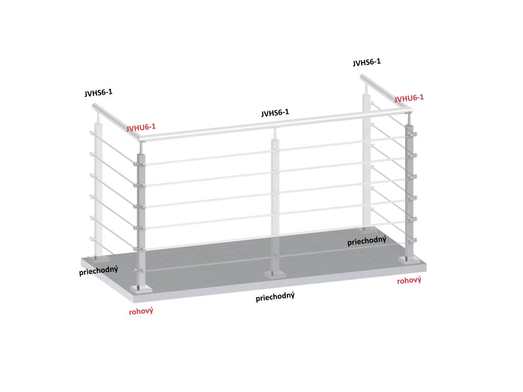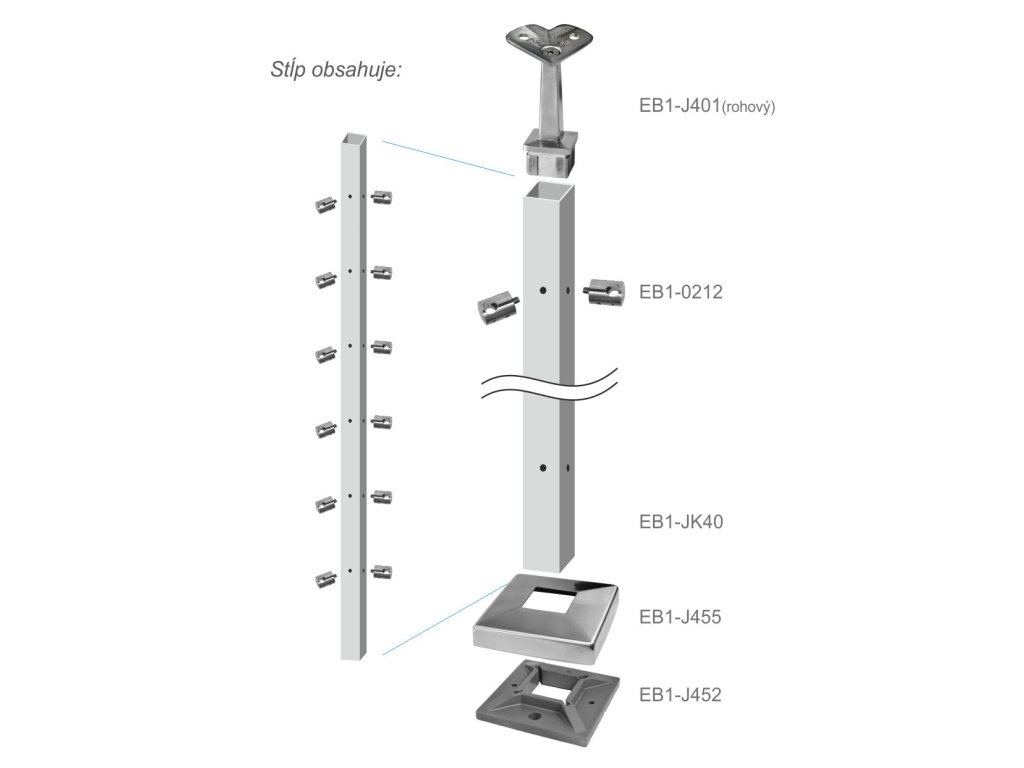 Nerezový sloup, vrchní kotvení, 6 řadový rohový, vrch pevný, (40x40 mm), broušená nerez K320 / AISI304Doplňkové parametry