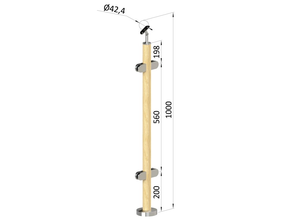 dřevěný sloup, vrchní kotvení, výplň: sklo, průchozí, vrch nastavitelnDoplňkové parametry