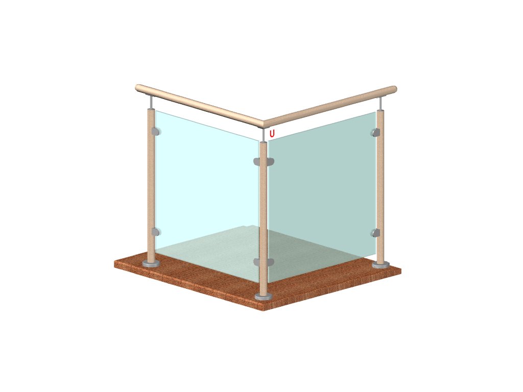 dřevěný sloup, vrchní kotvení, výplň: sklo, rohový: 90 °, vrch pevný (