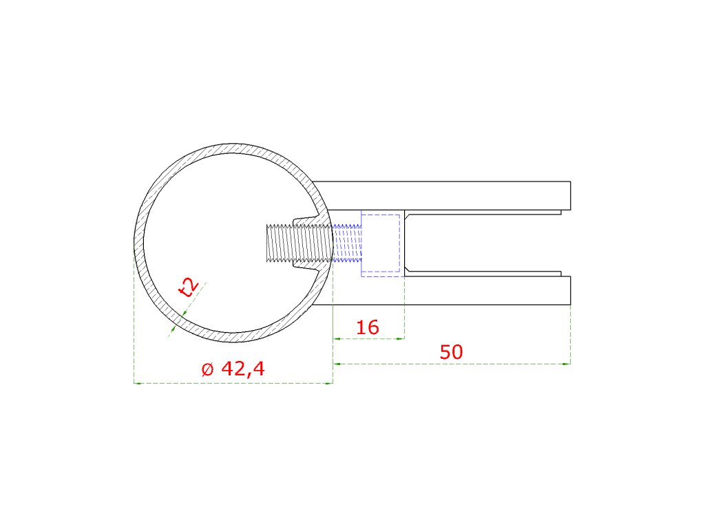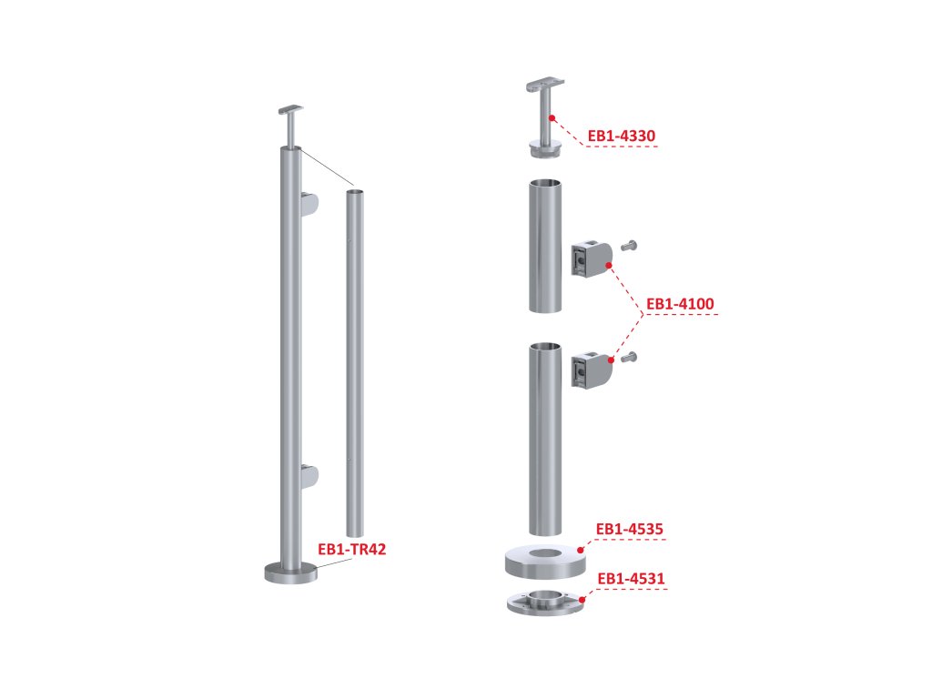 nerezový sloup, vrchní kotvení, výplň: sklo, pravý, vrch pevný, (ø 42.4x