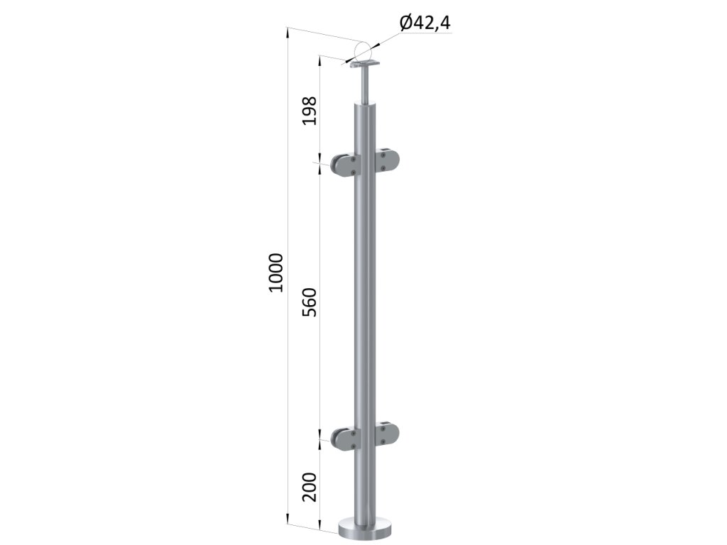 Nerezový sloup, vrchní kotvení, výplň: sklo, průchozí, vrch pevný (ø42,4x2 mm), broušená nerez K320 / AISI316Doplňkové parametry