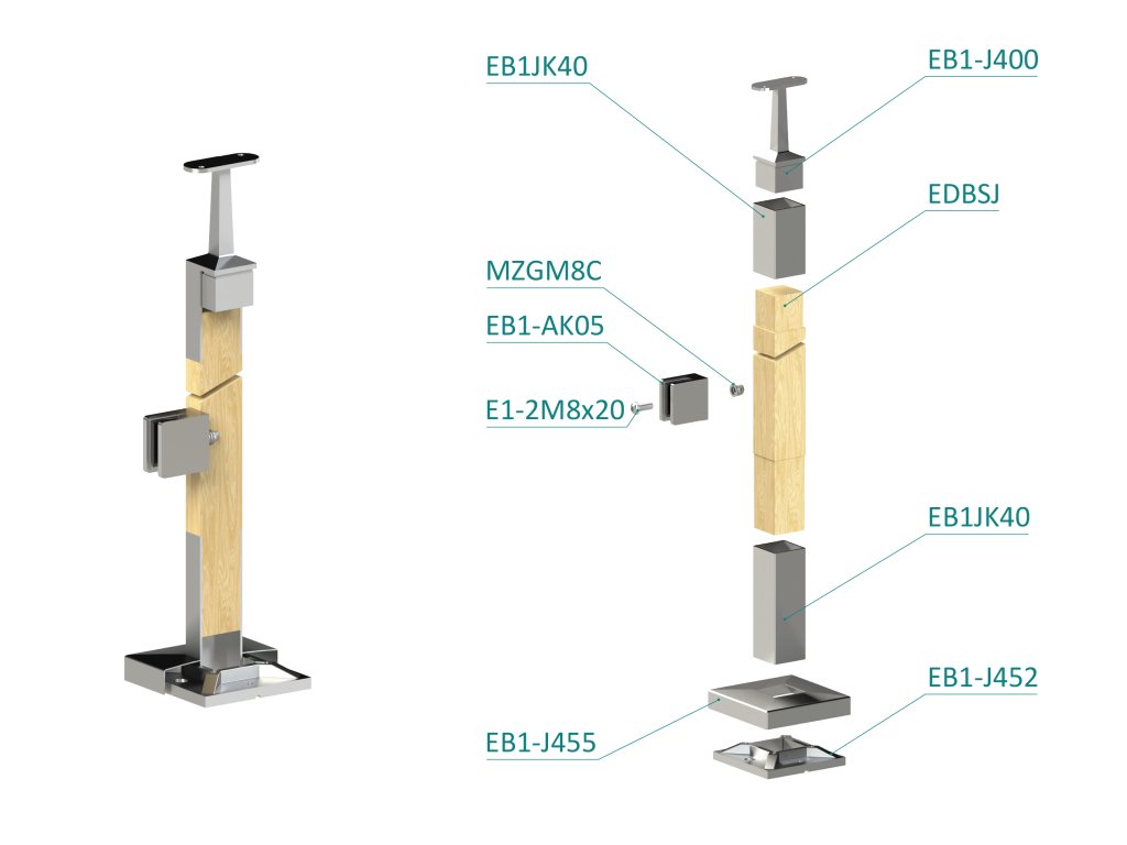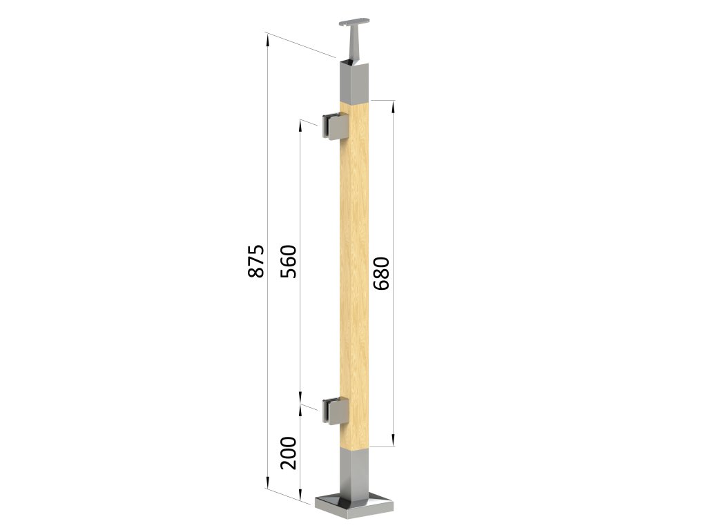 Dřevěný sloup, vrchní kotvení, výplň: sklo, levý, vrch pevný (40x40 mm), materiál: buk, broušený povrch s nátěrem BORI (bezbarvý)Doplňkové parametry