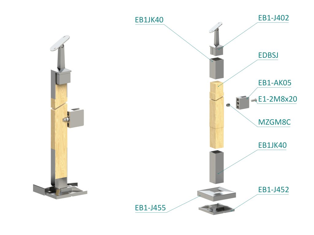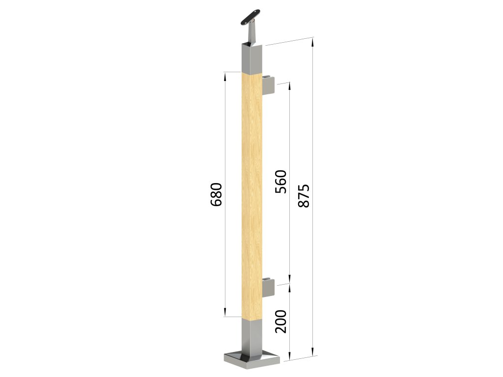 dřevěný sloup, vrchní kotvení, výplň: sklo, pravý, vrch nastavitelný (40x40mm), materiál: buk, broušený povrch bez nátěru