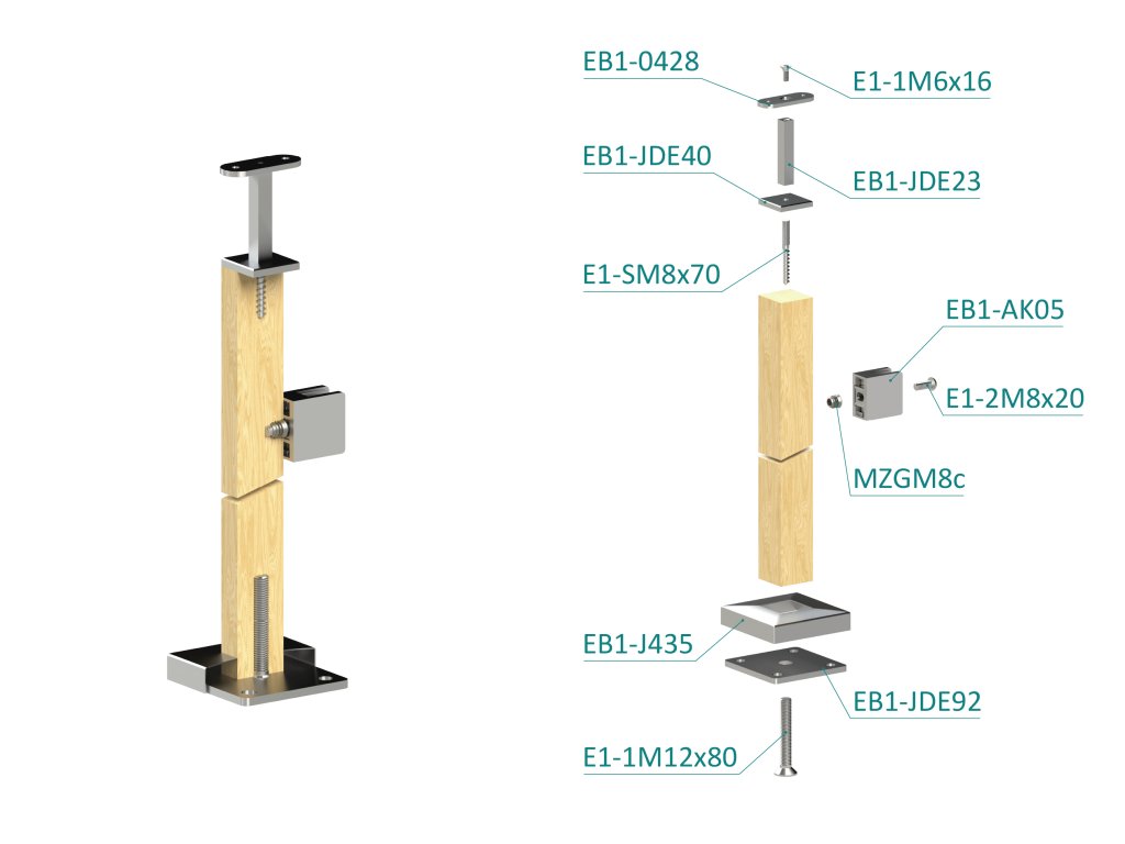 dřevěný sloup, vrchní kotvení, výplň: sklo, pravý, vrch pevný (40x40mm)Doplňkové parametry