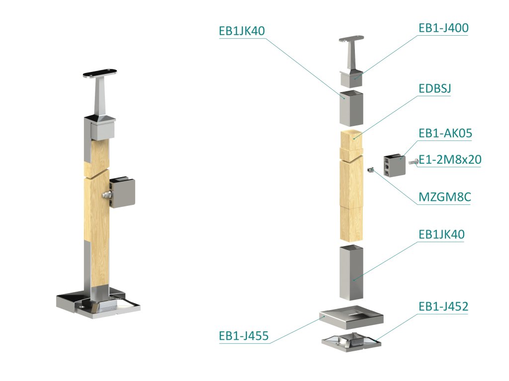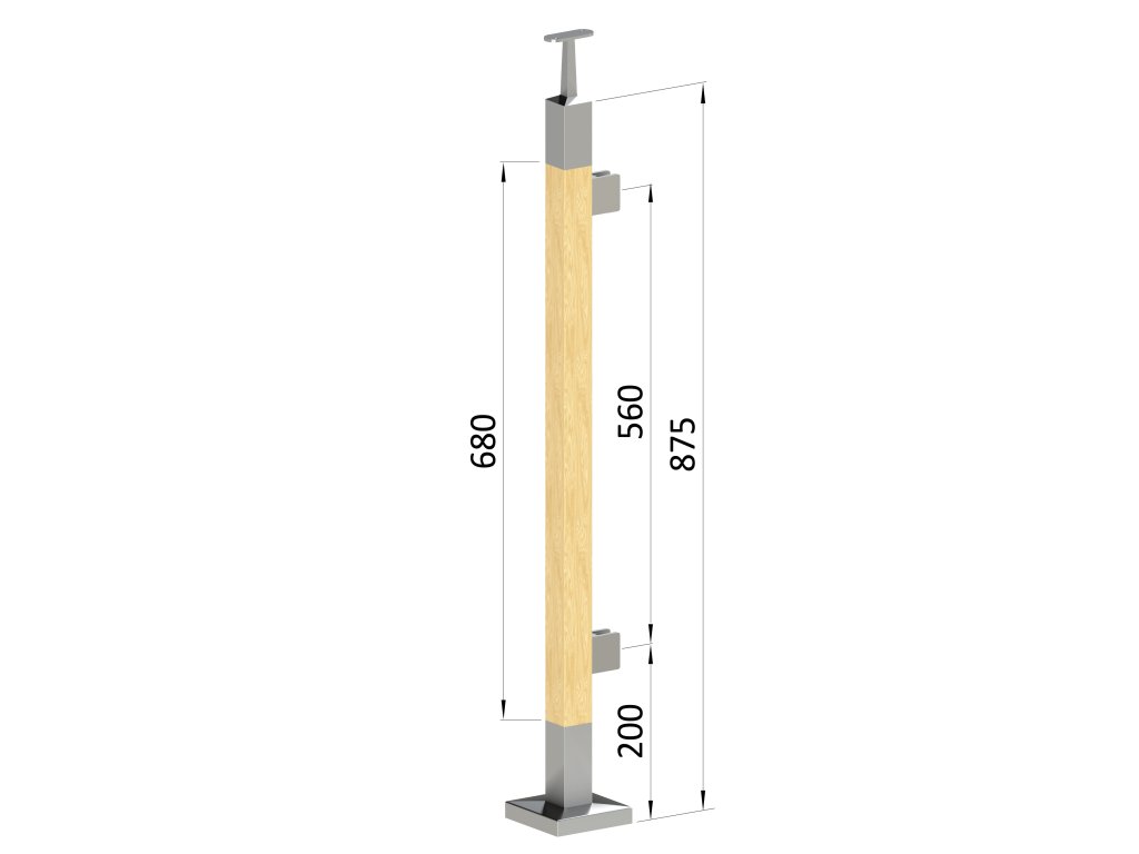 dřevěný sloup, vrchní kotvení, výplň: sklo, pravý, vrch pevný (40x40mm), materiál: buk, broušený povrch s nátěrem BORI (bezbarvý)