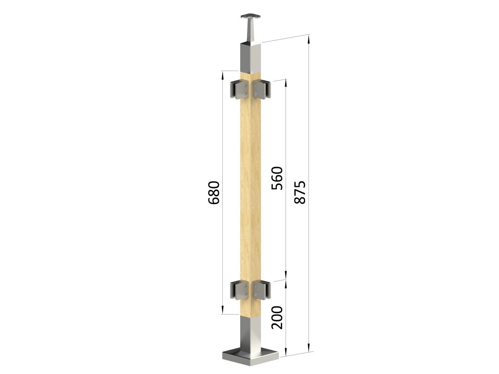 dřevěný sloup, vrchní kotvení, výplň: sklo, rohový, vrch pevný (40x40mm), materiál: buk, broušený povrch bez nátěru
