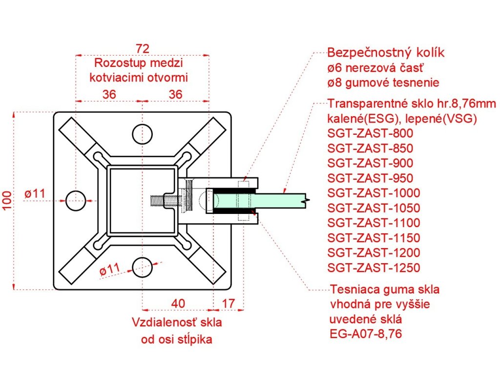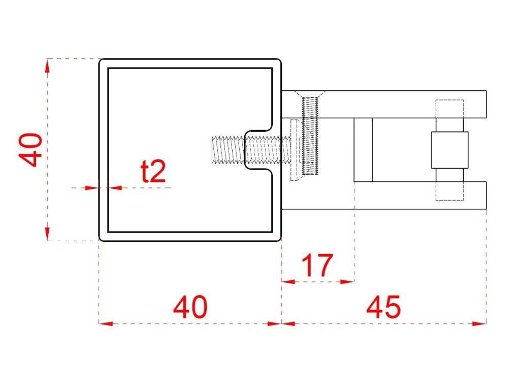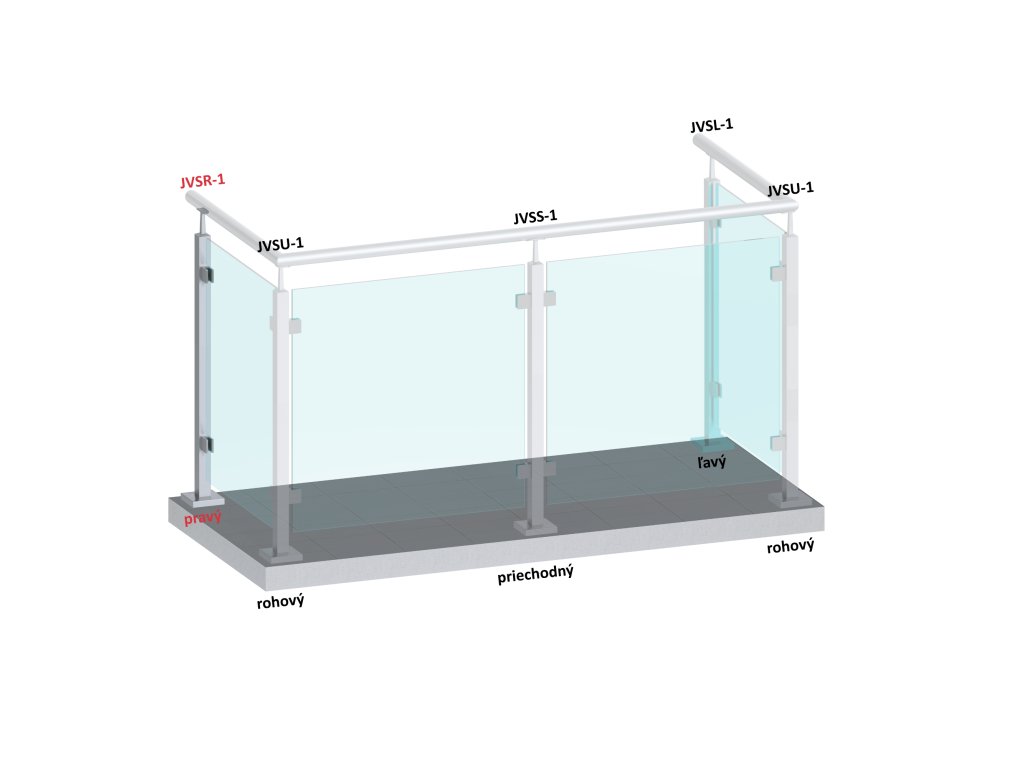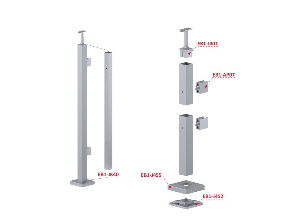 Nerezový sloup, vrchní kotvení, výplň: sklo, pravý, vrch pevný, (40x40 mm), broušená nerez K320 / AISI304Doplňkové parametry