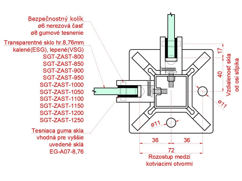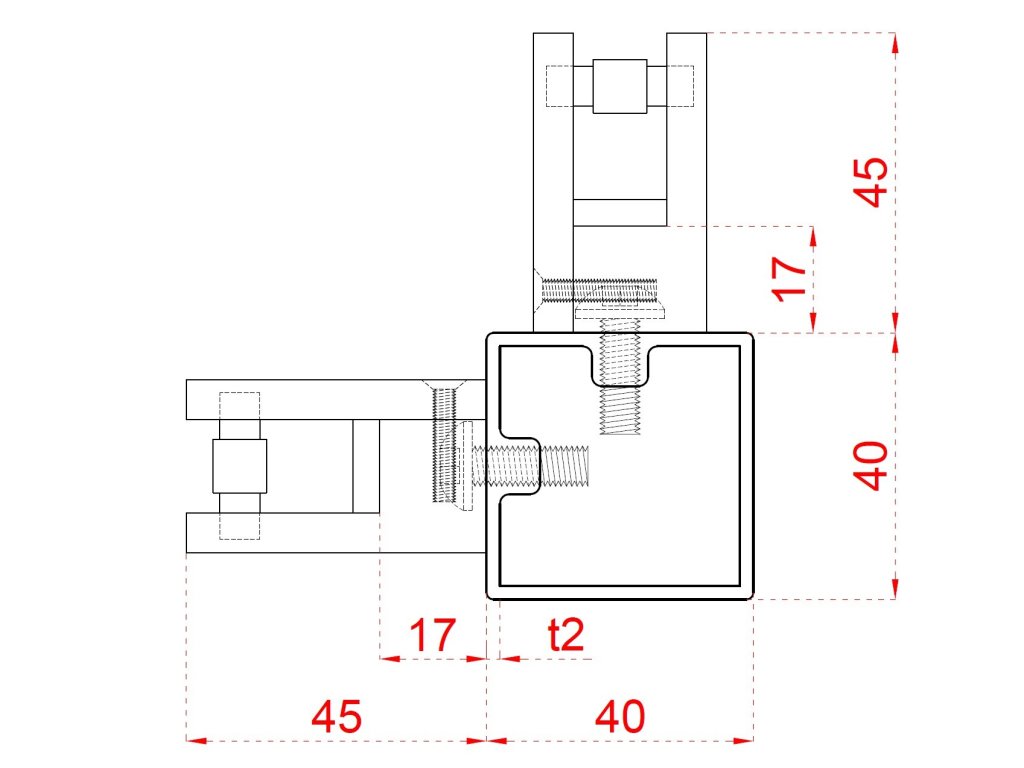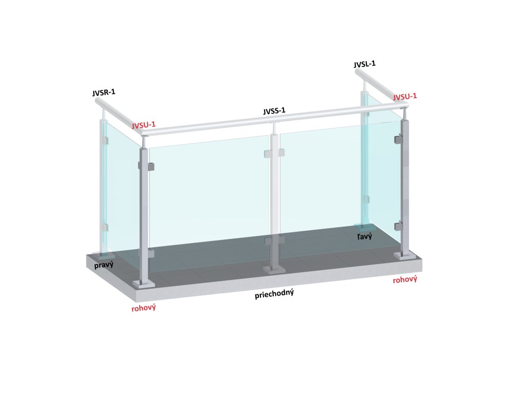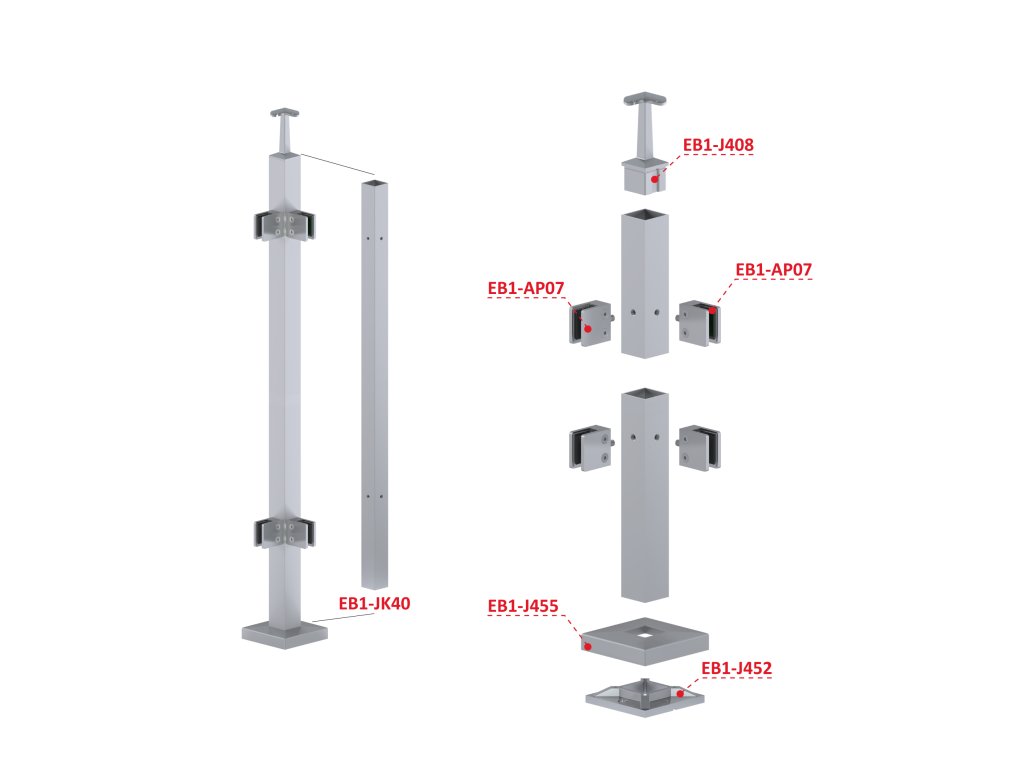 Nerezový sloup, vrchní kotvení, výplň: sklo, rohový, vrch pevný, (40x40 mm), broušená nerez K320 / AISI304Doplňkové parametry