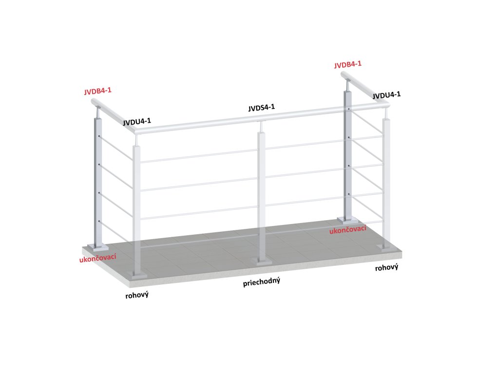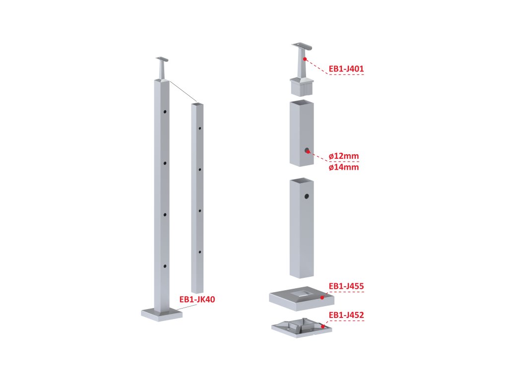 Nerezový sloup, vrchní kotvení, 4 děrový koncový, vrch pevný, (40x40 mm), broušená nerez K320 / AISI304Doplňkové parametry