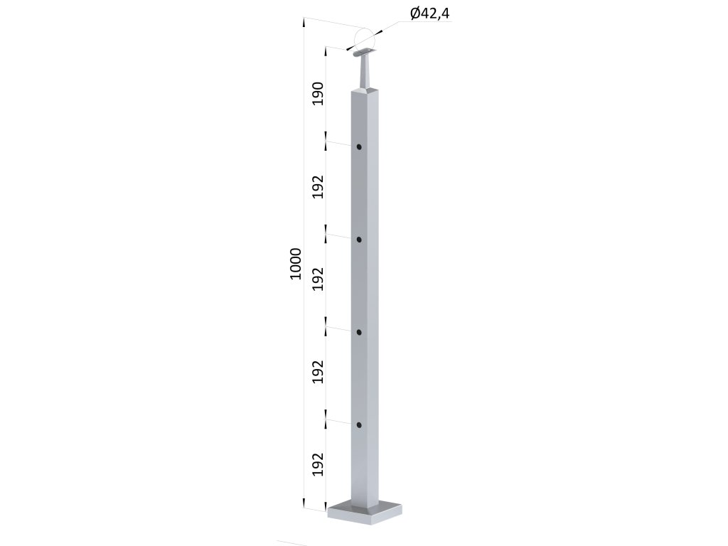Nerezový sloup, vrchní kotvení, 4 děrový koncový, vrch pevný, (40x40 mm), broušená nerez K320 / AISI304