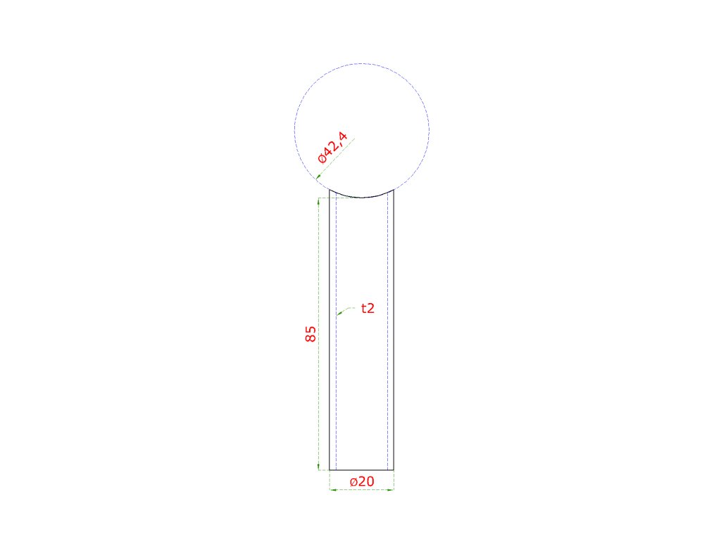 Přechod na vymezení vzdálenosti mezi sloupem ø 42,4 mm a kotevní deskou, ø 20x2,0 mm /L:85 mm, bez vnitřního šroubu, broušená nerez K320 / AISI304, bal: 1ksDoplňkové parametry