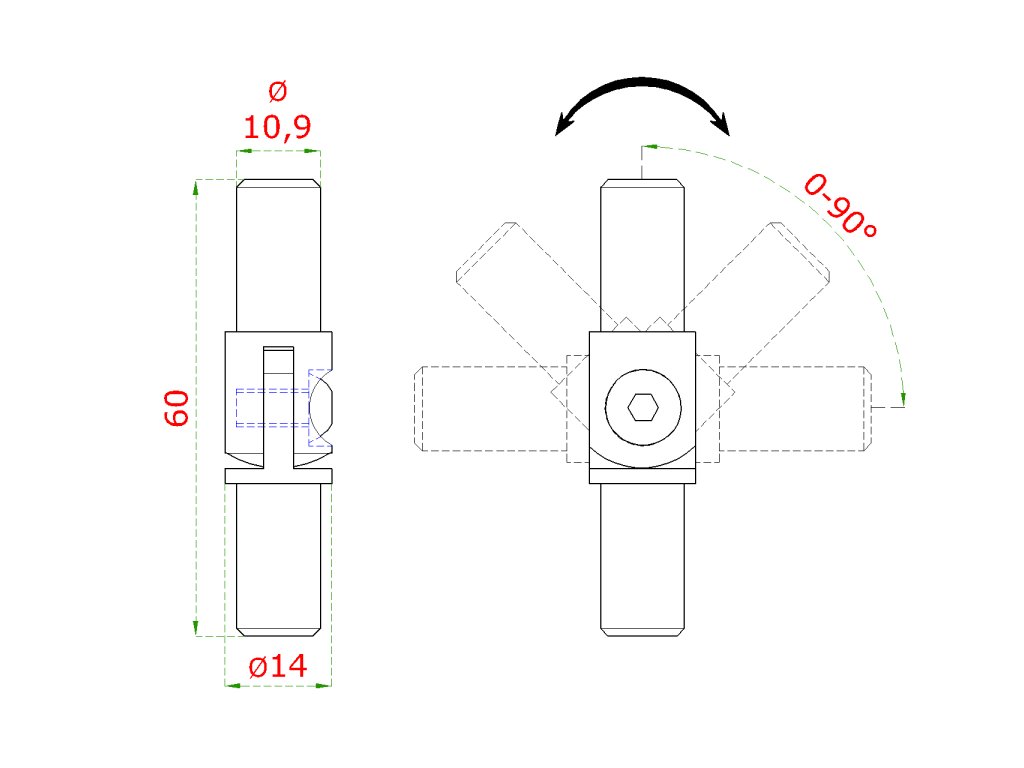 Spoj nastavitelný (0-100°) plný materiál, s kloubem, na trubku ø 14 mm, broušená nerez K320 / AISI304Doplňkové parametry
