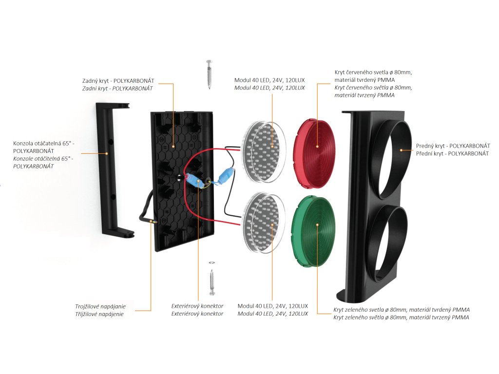 Semafor ø80 mm dvoukomorový, červená/zelená, 40xLED 120LUX, 24V, IP56