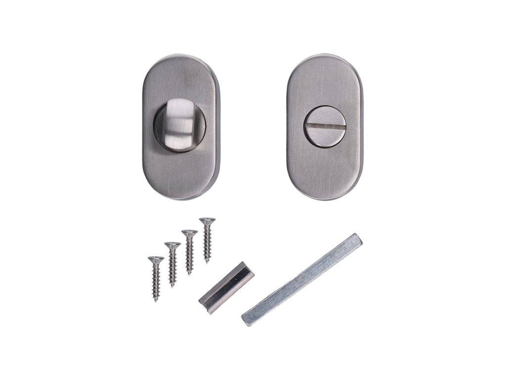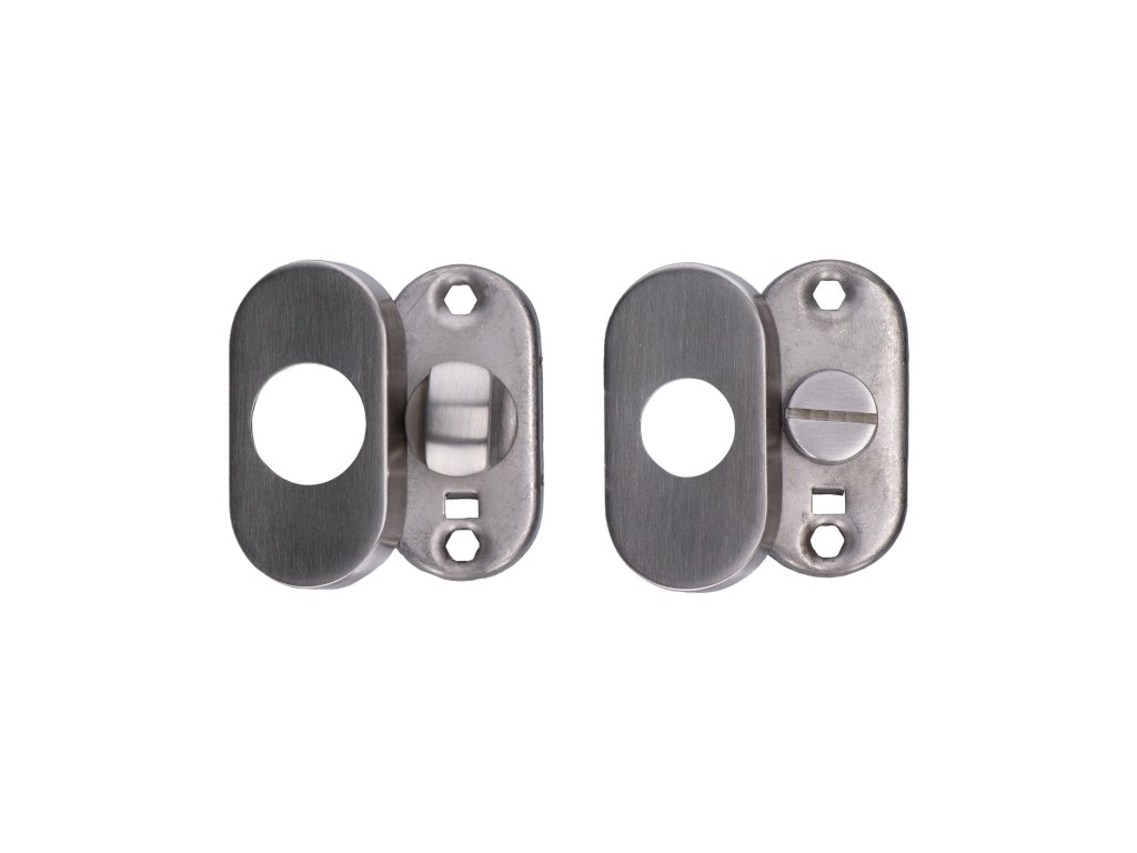 Oválná rozeta s uzamykací páčkou na WC dveře (62x32x10mm), rozměr páčky: 22x12x25mm, broušená nerez K320 /AISI304