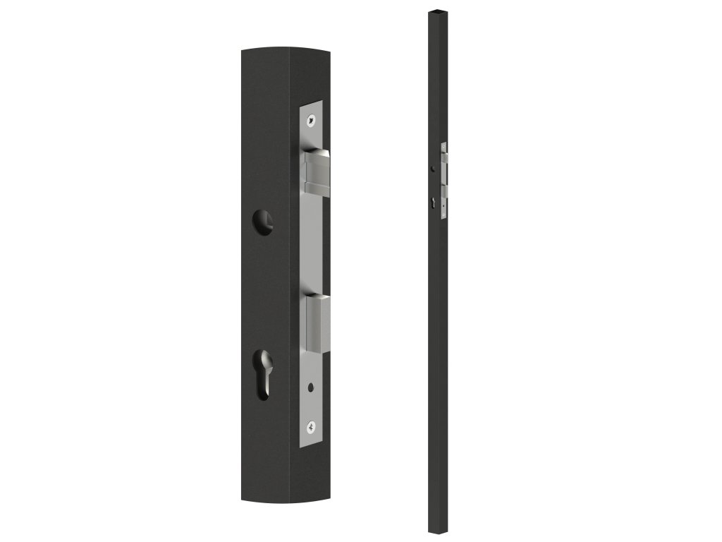 Profil 40 x 40 x 1,5 mm, H = 1500 mm se zapuštěným zámkem, vhodný pro rám branky, bez povrchové úpravy.Oboustranné použití zámku.
