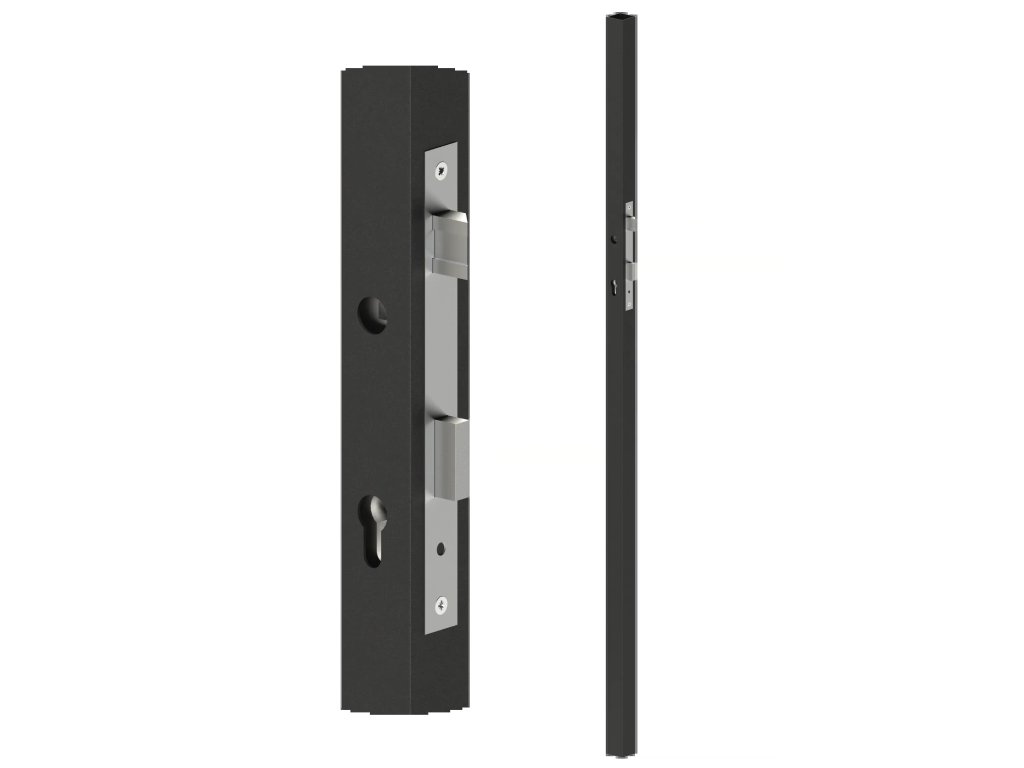 Profil 40 x 40 x 1,5 mm H = 2000 mm se zapuštěným zámkem, vhodný pro rám branky, bez povrchové úpravy.Oboustranné použití zámku.