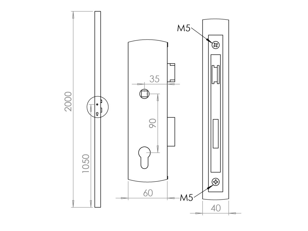 Profil 60x40x2mm H-2000mm se zámkem ZM90/50H, levý