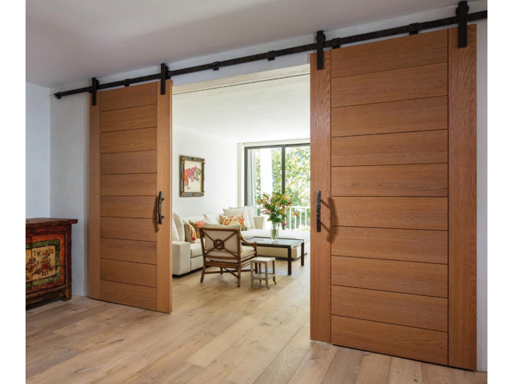 Závěsný systém je pozinkován a vhodný na použití jak v interiéru tak v exteriéru. Závěsné posuvní dveře šetří prostor, jsou jednoduché na montáž, zabezpečuje jednoduché a plynulé otvíraní / zavíraní.
