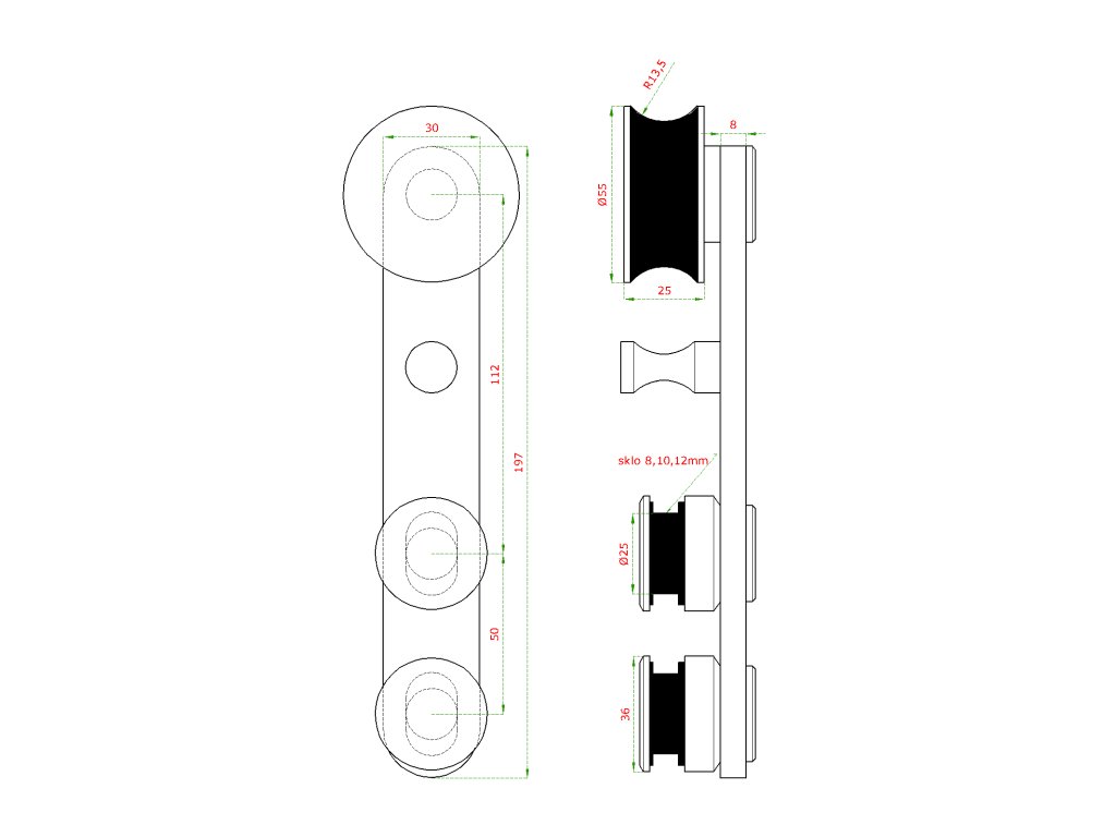 Pojezdový vozík k vodicímu profilu 25 mm pro závěsný systém, broušená nerez K320 / AISI304Doplňkové parametry