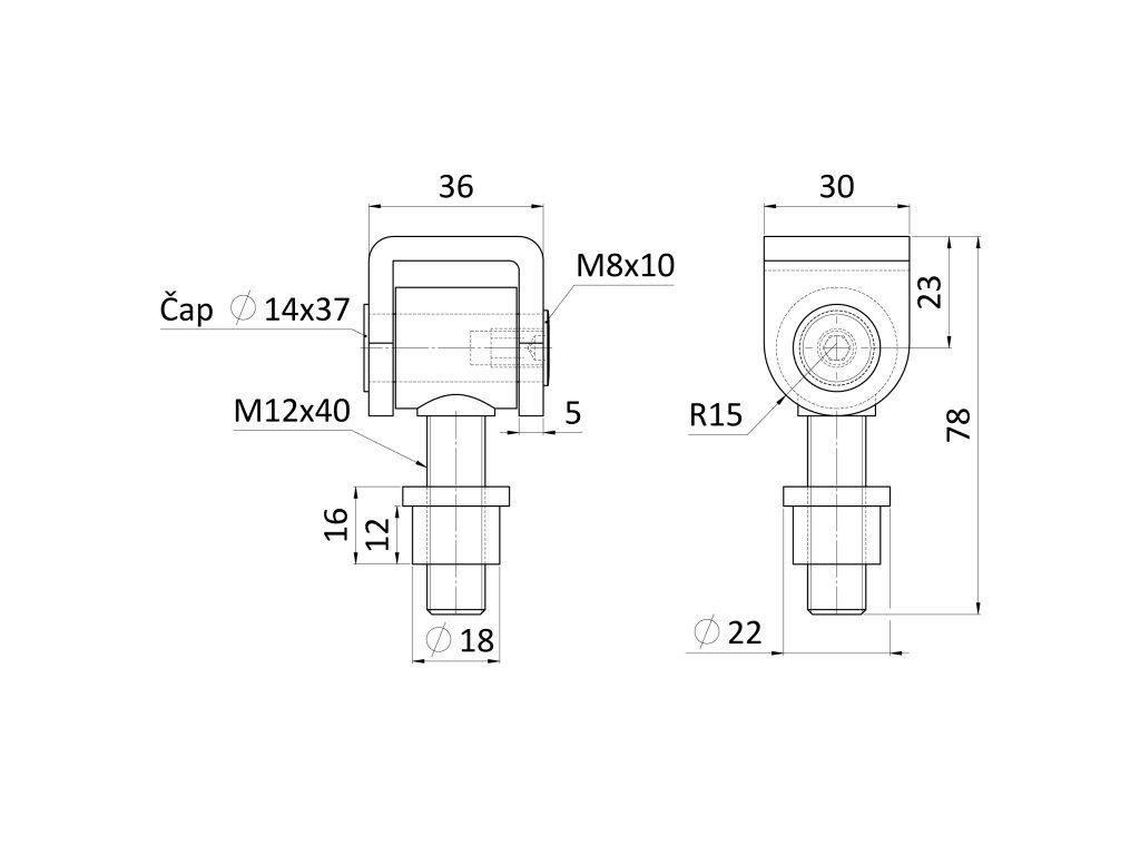 Závěs M12 navařovací, otvíratelný 90°, nastavitelný 1D
