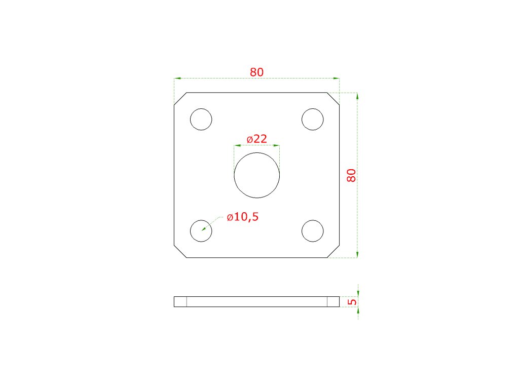 Kotevní deska navařovací k nastavitelným pantům (80x80x5 mm), otvor ø 22 mm, broušená nerez / AISI304Doplňkové parametry