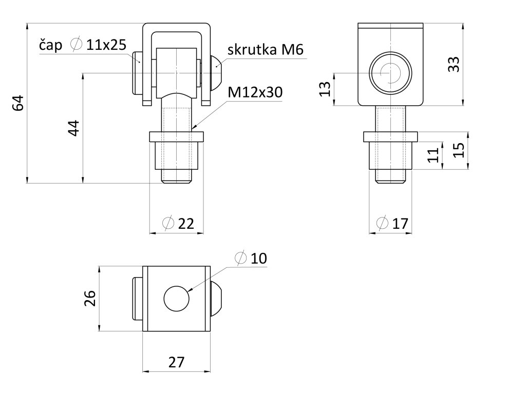 Závěs nastavitelný, navařovací, závit M12, broušená nerez / AISI304Doplňkové parametry