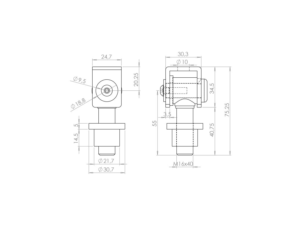 Závěs nastavitelný, navařovací, závit M16, broušená nerez / AISI304Doplňkové parametry