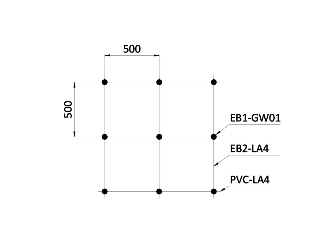 Montážní sada pro zelenou stěnu - nerez, rozmer 1x1m. Set obsahuje: EB1-GW01 (9ks); PVC-LA4 (12ks); MD-GEL454/3 (1ks); EB2-LA4 (10m)