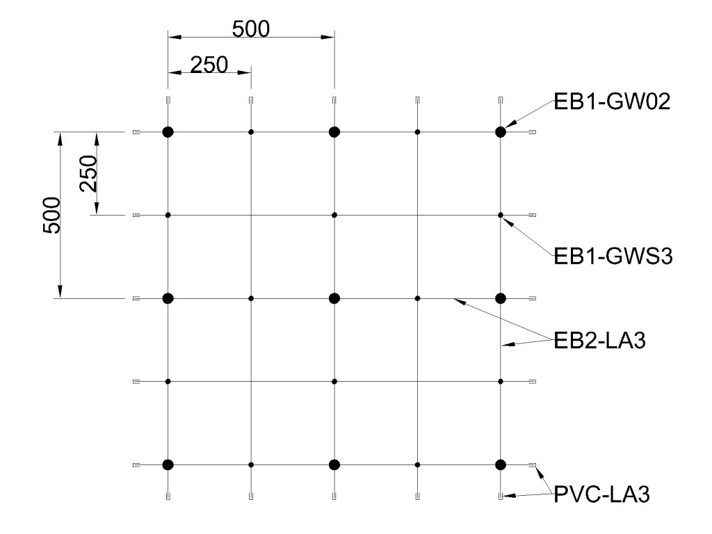Montážní sada pro zelenou stěnu - nerez, rozměr 2x1 m. Set obsahuje: EB1-GW02 (15ks), EB2-LA3 (25m), PVC-LA3 (28ks), EB1-GWS3 (22ks)Doplňkové parametry