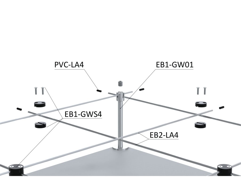 Montážní sada pro zelenou stěnu - nerez, rozmer 3x1m. Set obsahuje: EB1-GW01 (21ks); PVC-LA4 (36ks); EB2-LA4 (35m); EB1-GW04 (32ks)