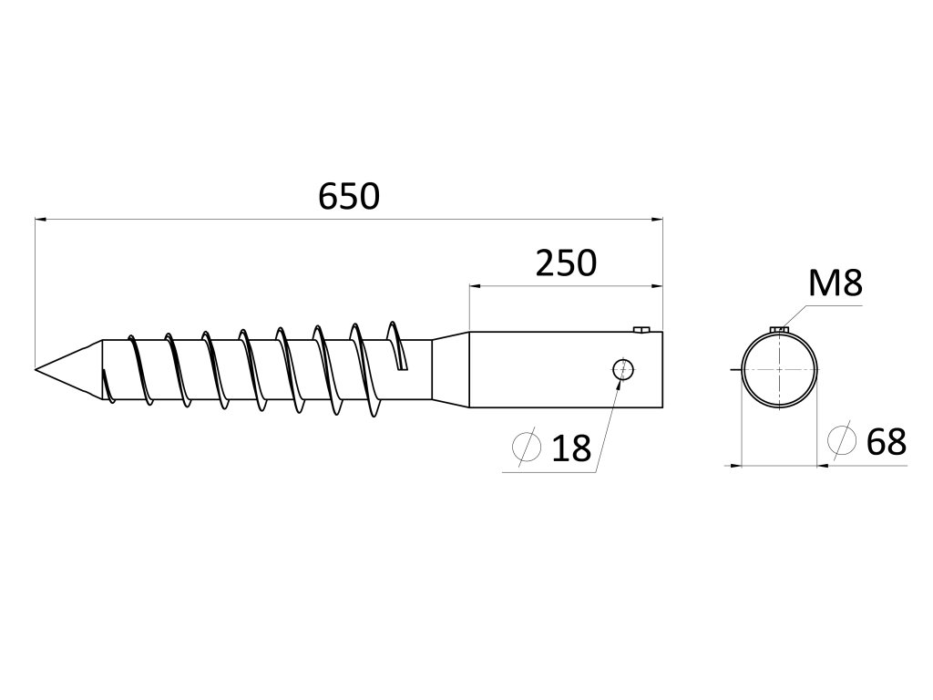 Zemní šroub / zemní vrut - O, 68x650mm, žárový pozink, 3xM8